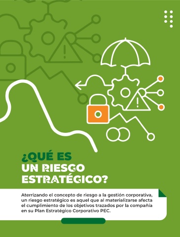 ¿QUÉ ES UN RIESGO ESTRATÉGICO? Aterrizando el concepto de riesgo a la gestión corporativa, un riesgo estratégico es aquel que al materializarse afecta el cumplimiento de los objetivos trazados por la compañía en su Plan Estratégico Corporativo PEC.